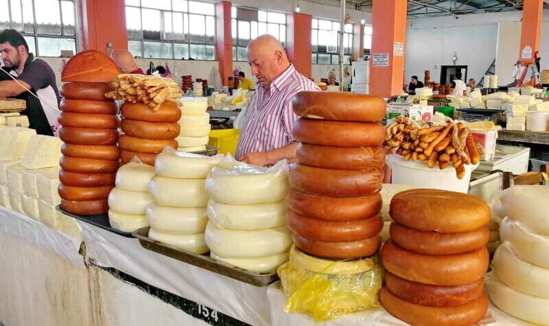 Ряды продавцов сыра. Какого только нет сорта! Нет Мацарелы! Нет Камамбера! Нет Пармезана! Зато все сорта местного, имеретинского, адыгейского, копченого. Именно копченый нам понравился больше всего, его и в качестве гостинца привезли родным.