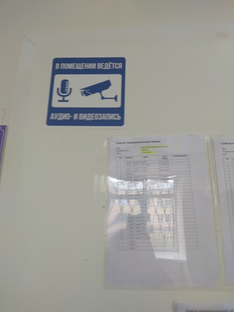 Я заметила, что в других местах всегда пишут, внимание идёт видео и аудио запись, а в нашей поликлинике не пишут.