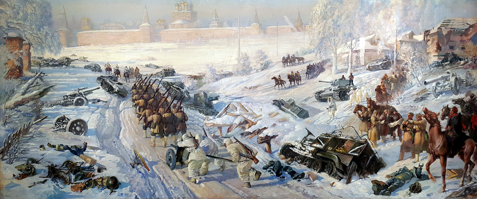 1. Фото «Битва под Москвой»: Это кадр захватывает зрителя атмосферой тяжелого времени Великой Отечественной войны. На фото виден крупный план советской пехоты, борющейся в снежный день под Москвой, показывая их мужество и решимость.