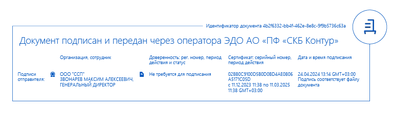 На картинке вид ЭЦП Генерального директора под отправленными им документами через Диадок, подписанных его ЭЦП, .