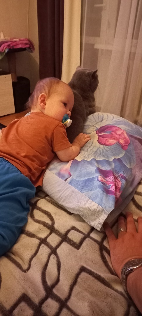 В вечер выписки наш пушистик ни на минуту не отходил от кроватки , все время нюхал и смотрел на сына , а когда Рома начинал плакать , сразу подбегал и мяукал. В первую ночь , он караулил его у кроватки и тогда я поняла , что они будут самыми лучшими друзьями .😻😻😻