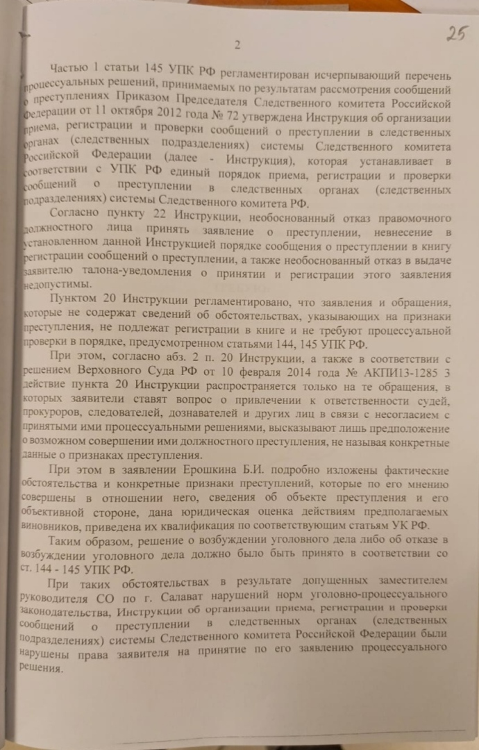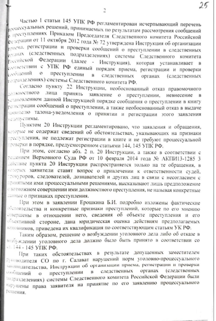 Мною на действия должностных лиц СК СУ по городу Салават РБ была подана жалоба в Салаватский городской суд в порядке статьи 125 УПК РФ.