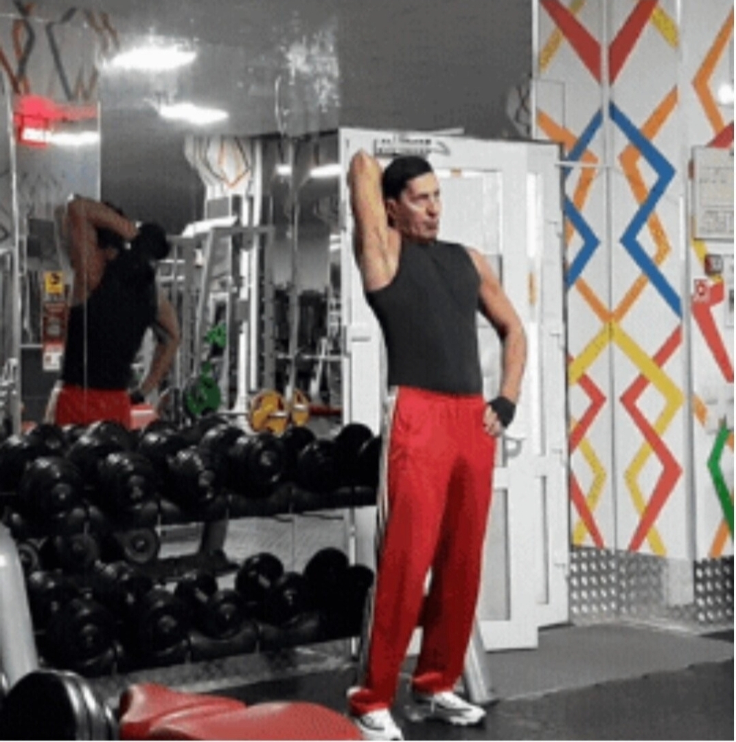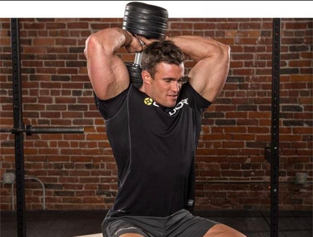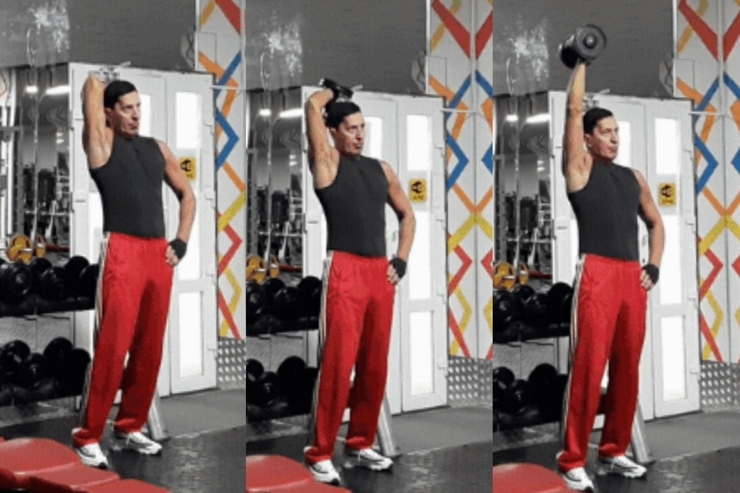 В момент когда Вы поднимаете руку вверх над головой - она растягивается. При опускании гантели трицепс тянется ещё сильнее! И чем ниже вы опустите гантелю, тем больше её нагрузите растяжкой.