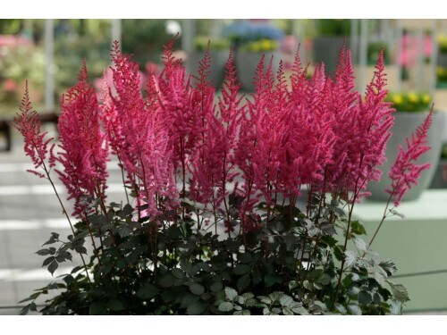 Новое, безусловно, выдающееся дополнение к разнообразию астильба, который имеет яркие, крупные бархатистые розово-красные соцветия и темно-красные, почти бордовые стебли. Листья также необычного шоколадно-красного цвета, который меняется на темно-зеленый, когда растение полностью расцветает.