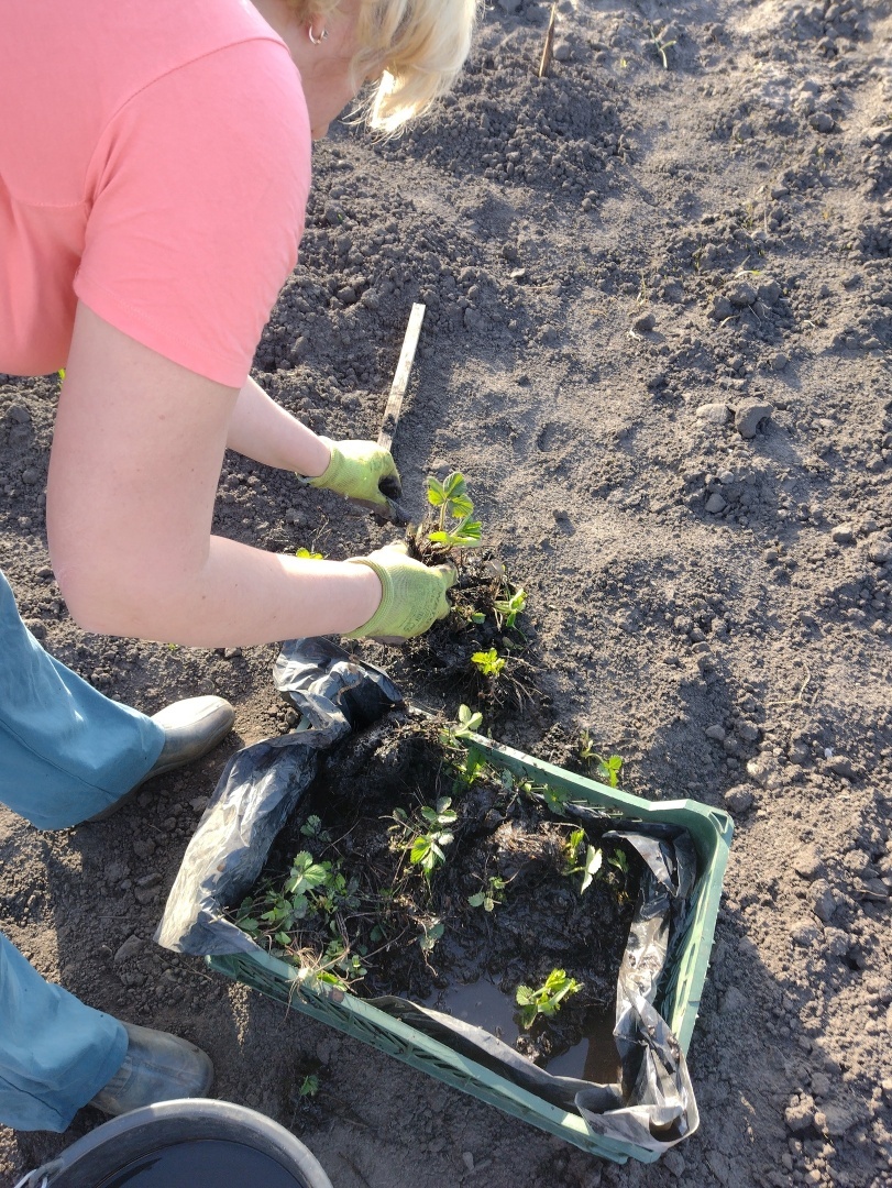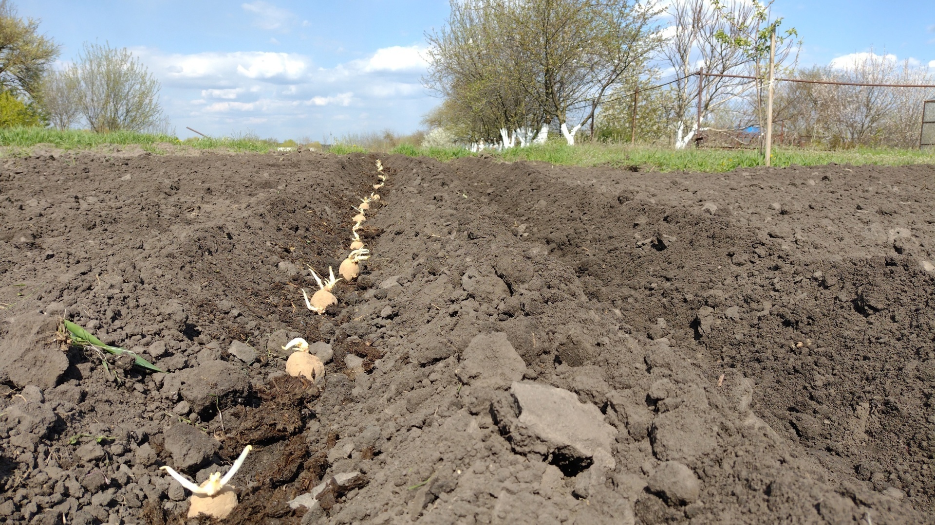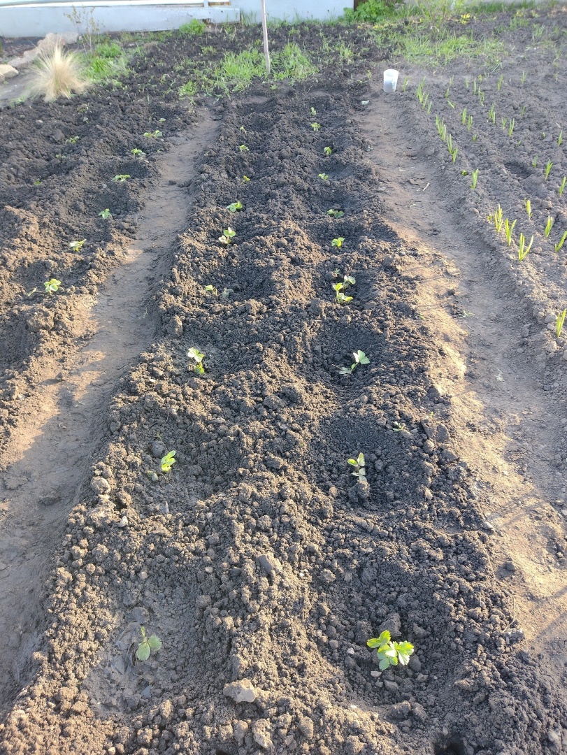 воды натаскал, под каждый кустик полил, она начала их закапывать сама, потому , что мне не доверяет, один рядочек готов