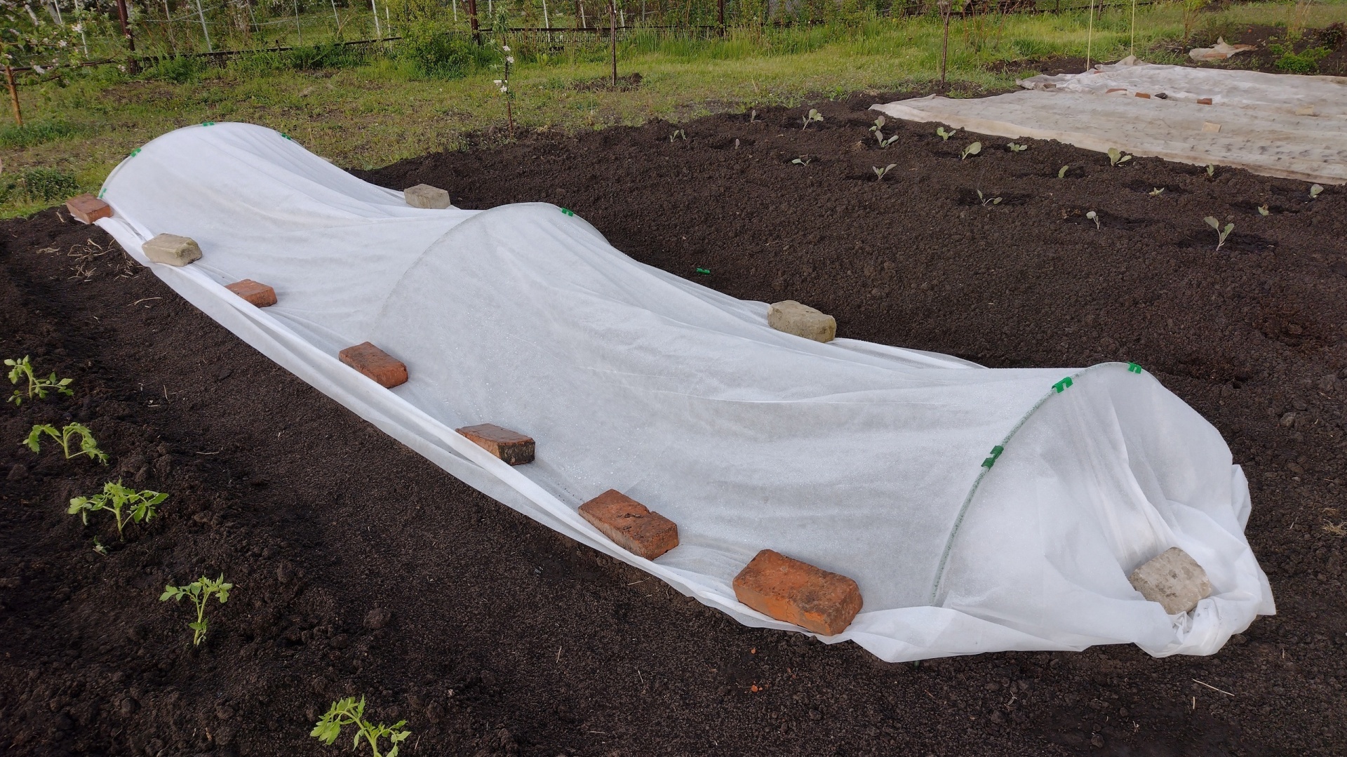 Кое что в этом году, все равно пришлось воткнуть под "пленку", хотя весна и оказалась на славу теплая, но ночью все равно еще бывает прохладно, особенно на открытом грунте.