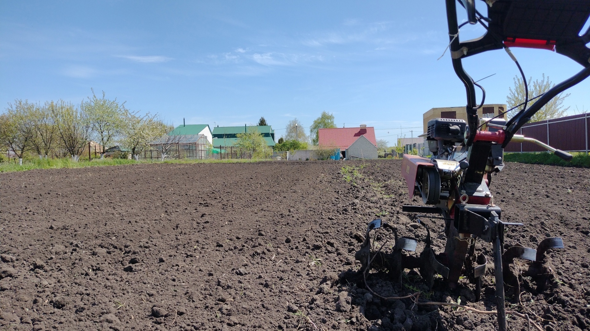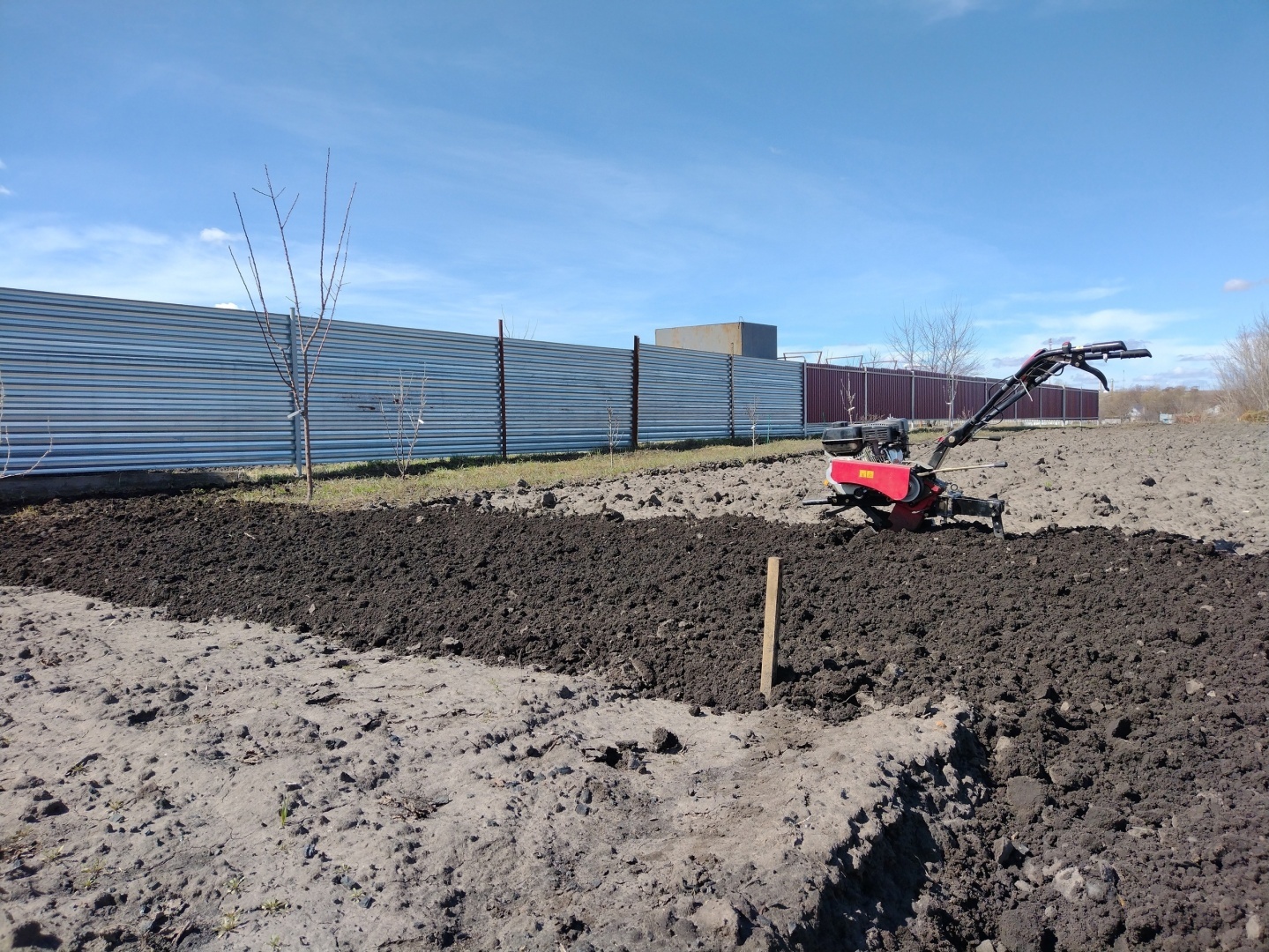 И потихонечку пошел в "борозду". Участок был небольшой и справился я с ним буквально за час, три раза прошелся, чтобы земля была "как пух"