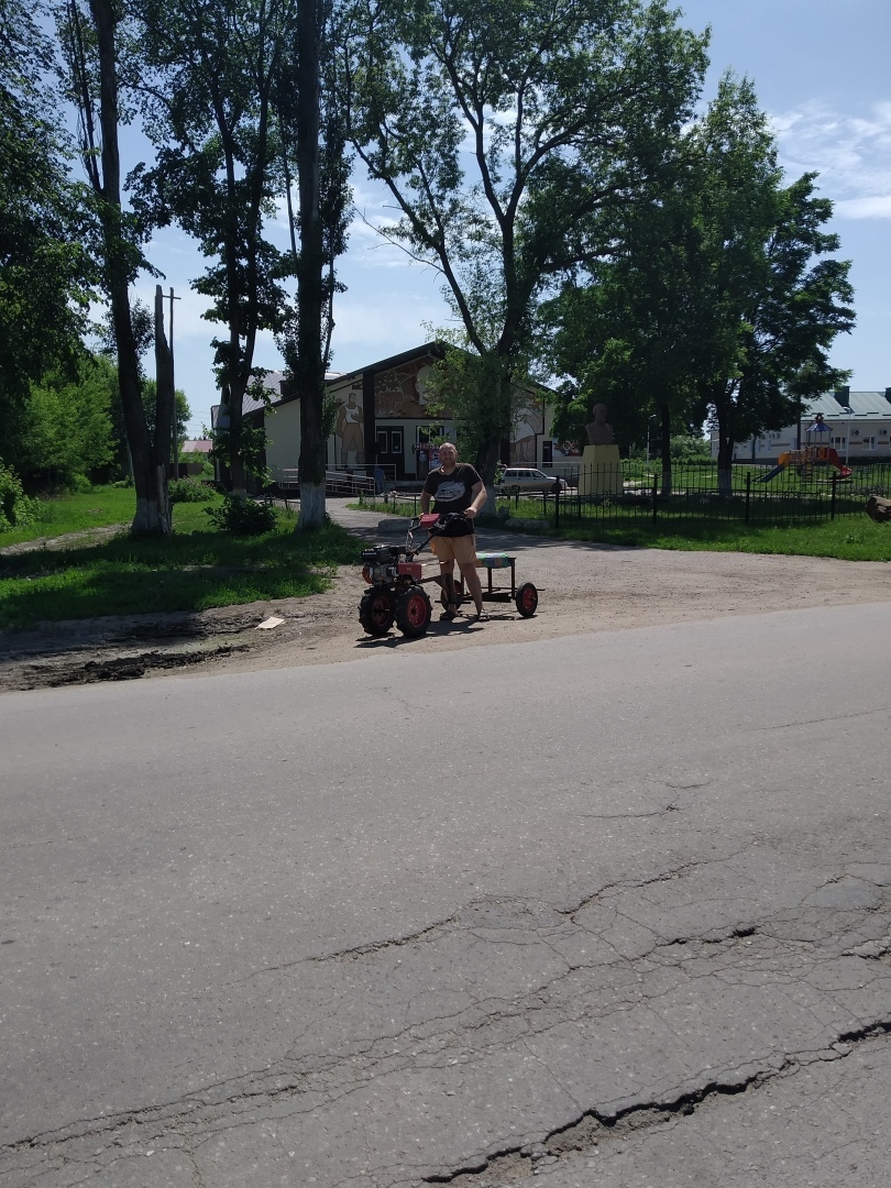 выкатил свой мотоблок, заранее его сразу заправил, чтобы потом не отрываться и не ходить снова за бензином.