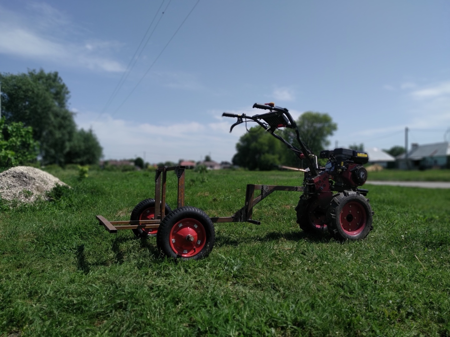 я решил доехать на своем мотоблоке до речки, выгнал его на улицу прицепил, коляску и поехал