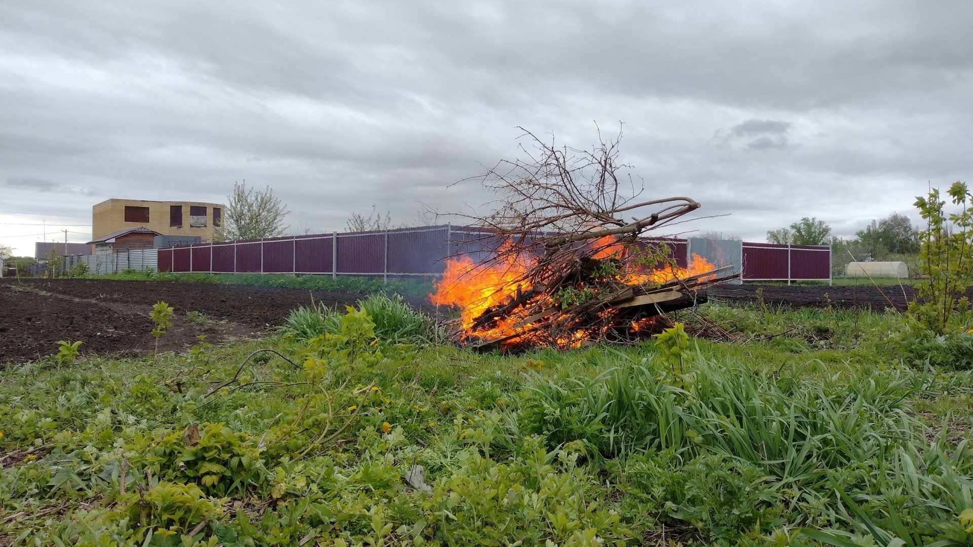 На фоне всего этого, нужно еще было успеть сжечь накопившийся мусор, потому ,что скоро объявят "противопожарный режим" и тогда нельзя будет жечь до самой поздней очереди, поэтому приходилось успевать бегать еще и на костер подкидывать , чтоб всё прогорало .
