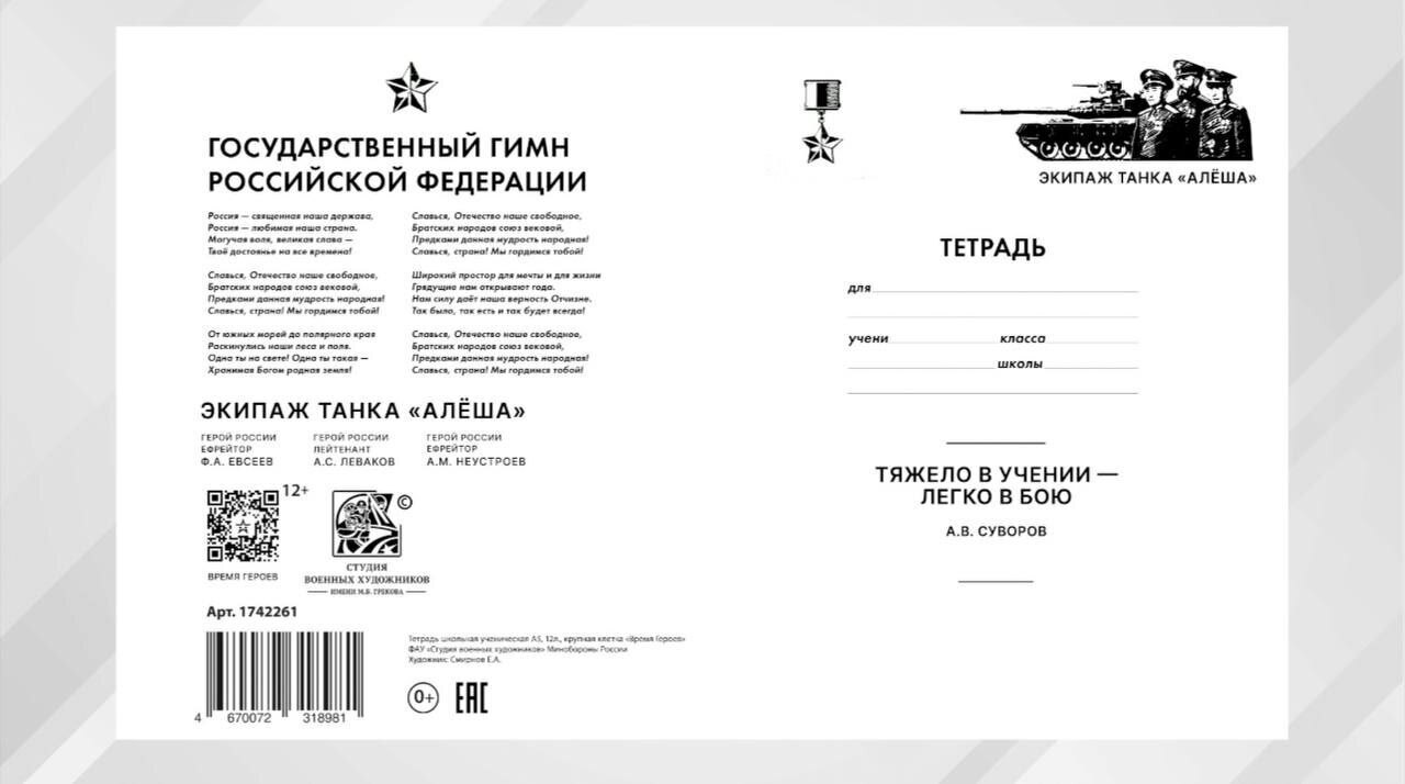 💬Капитан танка, родом из Приморского края, и его экипаж, уроженцы Республики Саха (Якутия), являются героями России и пользуются огромной популярностью на своей малой родине. Сообщение о выпуске учебных тетрадей с портретами славного экипажа вызвало волну поддержки в регионах, направленную на популяризацию и распространение школьных принадлежностей с патриотическими мотивами. Мы надеемся, что к этой инициативе присоединятся и другие регионы. На производстве, где создаются данные тетради, в качестве подарка детям, прибывшим на экскурсию, уже вручаются тетради с изображением знаменитого экипажа. Тем временем, крупные торговые сети уже разместили заказы на партии канцелярских товаров с патриотической тематикой.