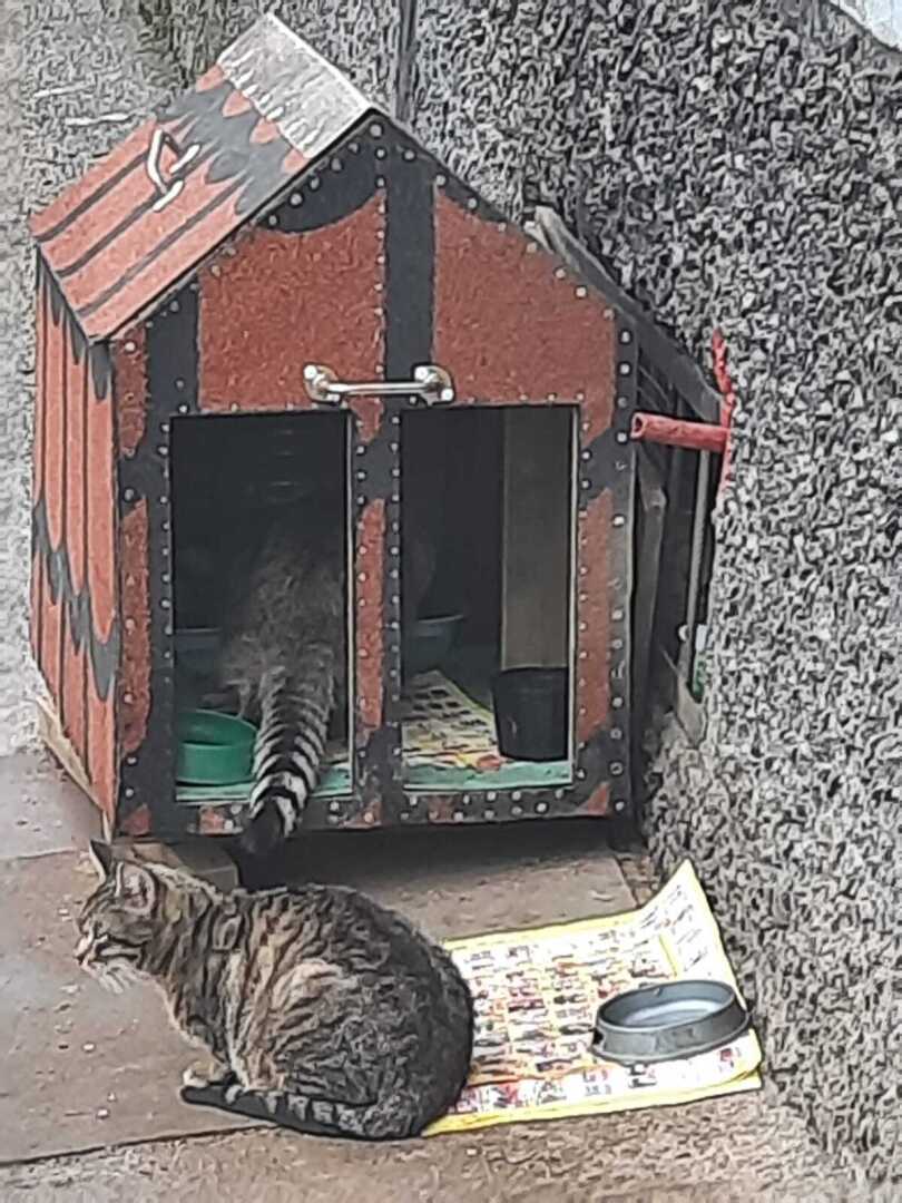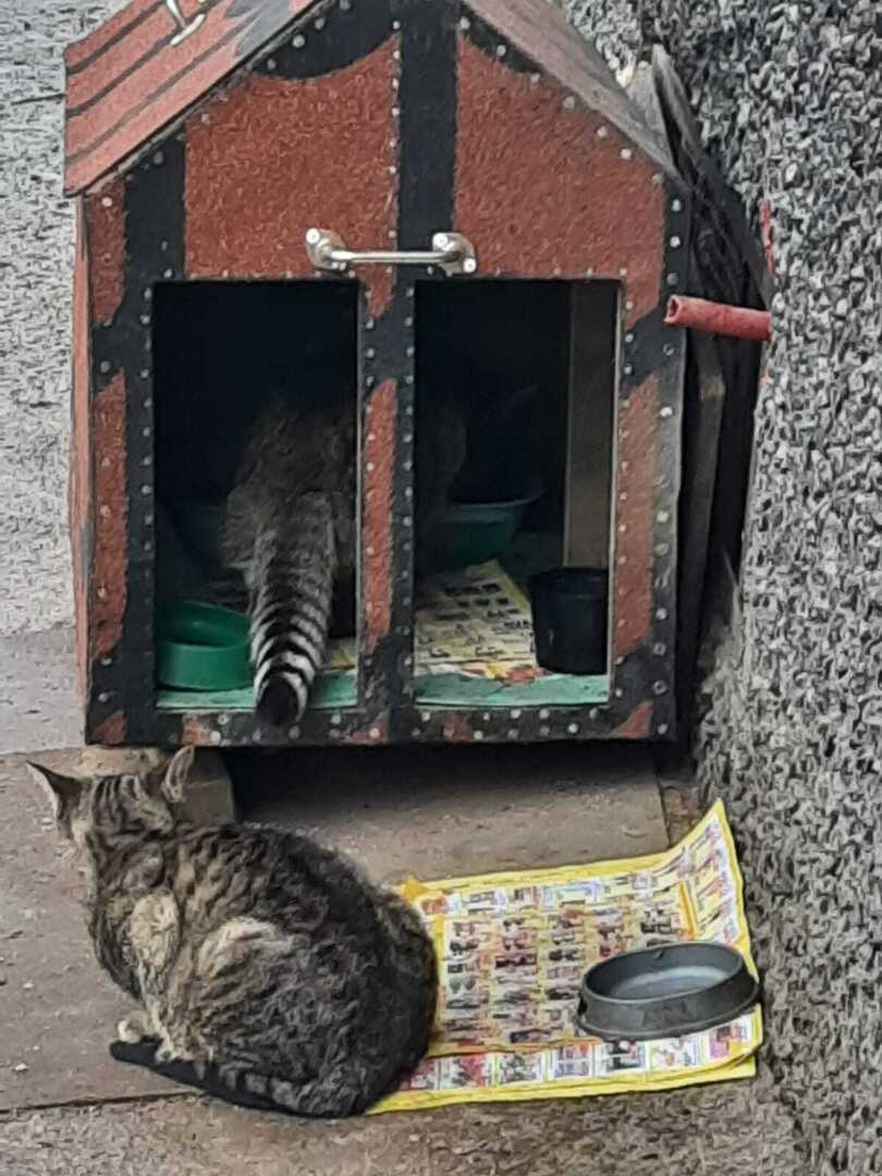 Эти кошки жили на улице. Когда я их нашёл я, сделал несколько фотографий. Они жили в маленьком домике. Я не знал что буду об этом рассказывать. Так совпало. У многих людей аллергия и их можно понять. Если у моей девушки жены будет аллергия я отдам их в добрые руки. Но только в самые добрые и буду внезапно проверять первое время, но длительно, новых заботливых хозяев. Я всегда довожу дело до конца. Думаю так делают многие.