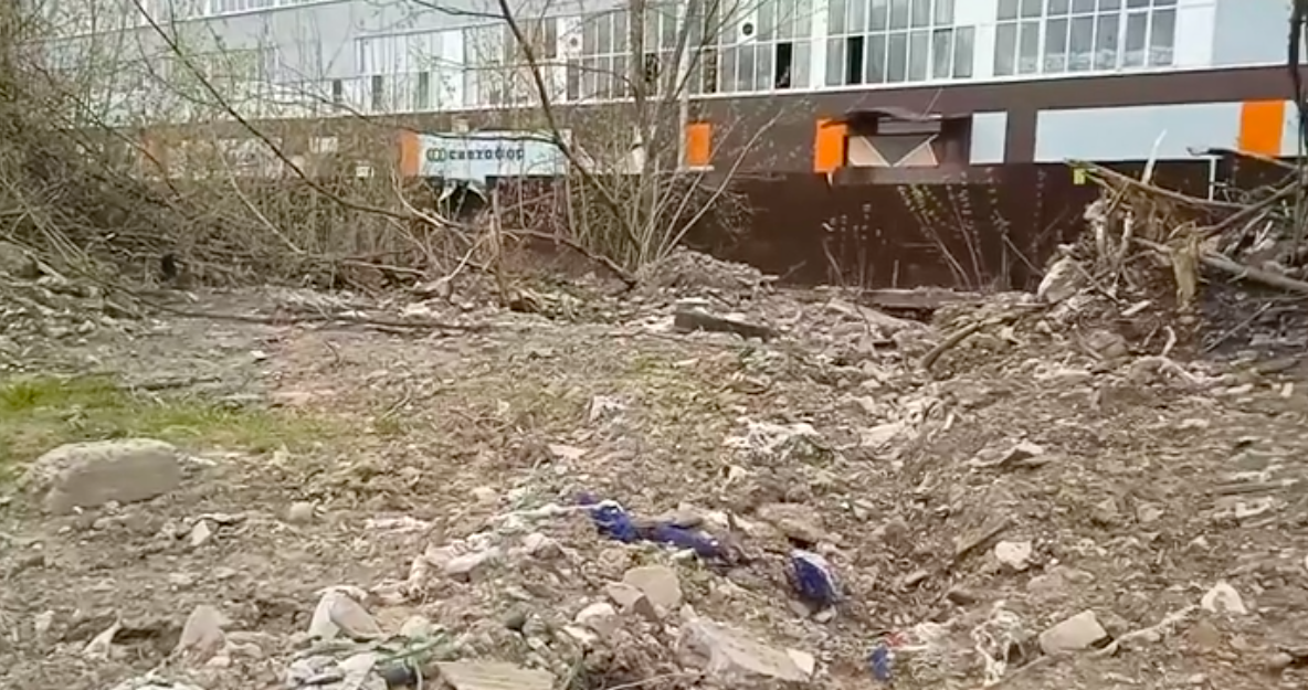 То тут, то там торчат какие-то палки, разбросаны обломки кирпича и раскидан мусор. Ночью тут ходить наверняка страшно и опасно, ведь именно такие места очень часто облюбовывают криминальные элементы и бездомные собаки...