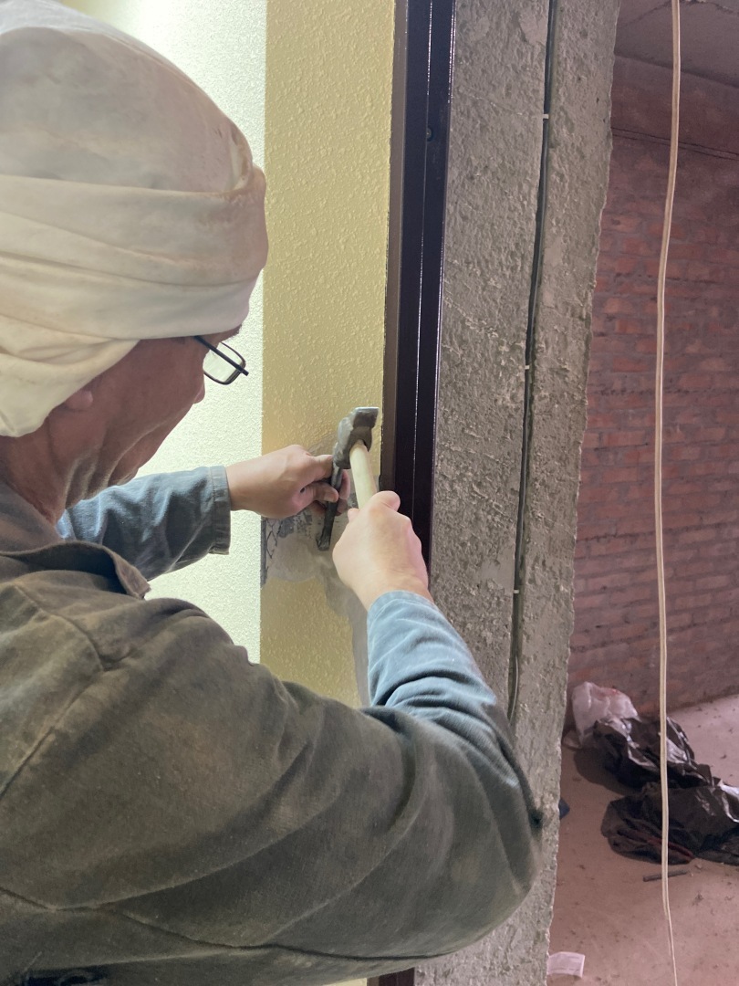 Ремонтом занялся папа, он у меня мужчина рукастый. Все делал четко и выверенно, поговорка «семь раз отмерь, один — отрежь» точно про него. Но качественно и хорошо в данном случае означало медленно (и это не моя придирка, папа кухонными весами отмерял соотношение сухой штукатурки и воды, чтобы сделать замес четко по инструкции 😂)