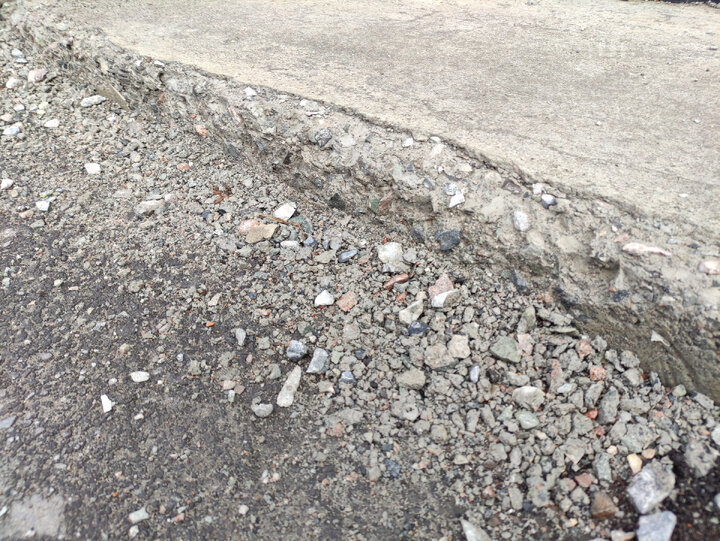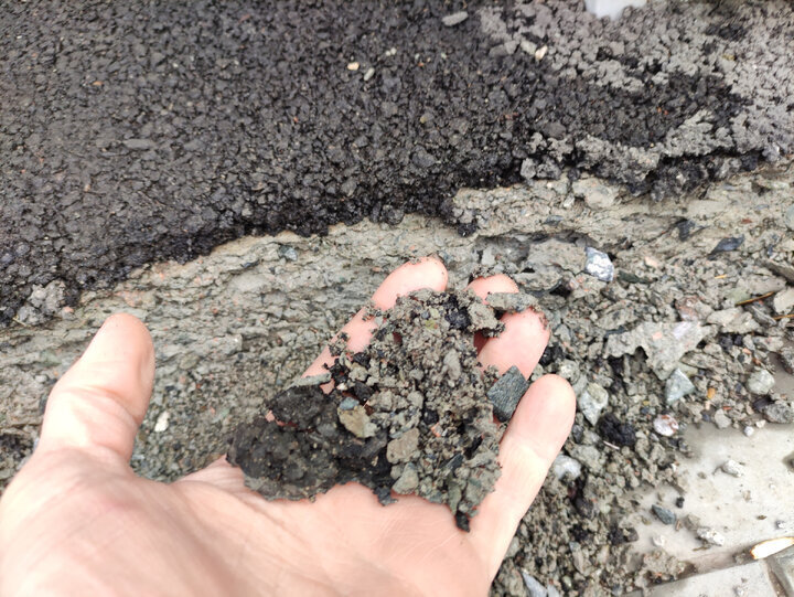 Принимается решение снести всё и залить заново уже не самомесным бетоном, а с ближайшего ЖБИ и более квалифицированной бригадой. И опять отмостка радует хозяина непродолжительное время и самодезинтегрируется. Не помогает резиновая краска, жидкое стекло и тонкий слой асфальта, который собственноручно хозяин накатал на многострадальную полосу бетона.