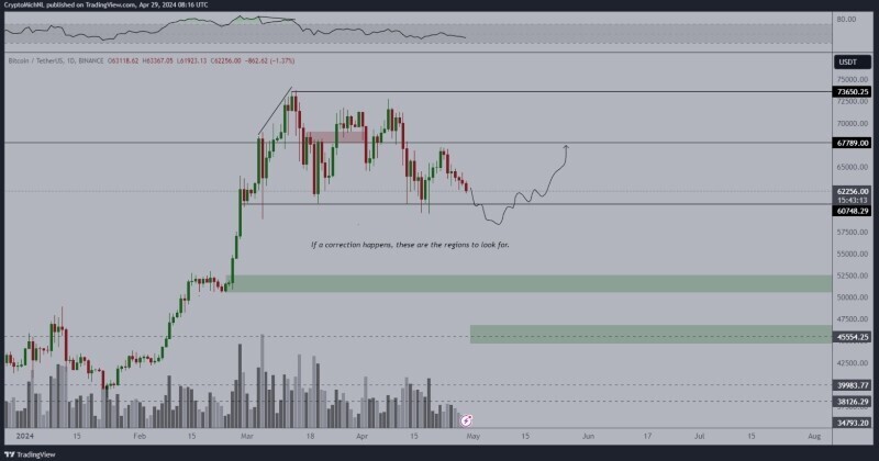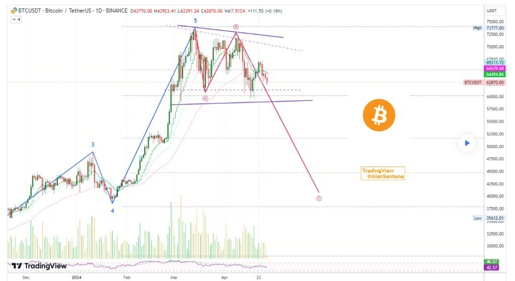 Ранее я публиковал что биток, упадёт до 60 тыс. Криптоаналитик предсказывает обвал цены биткоина уже в мае до 32 тыс.