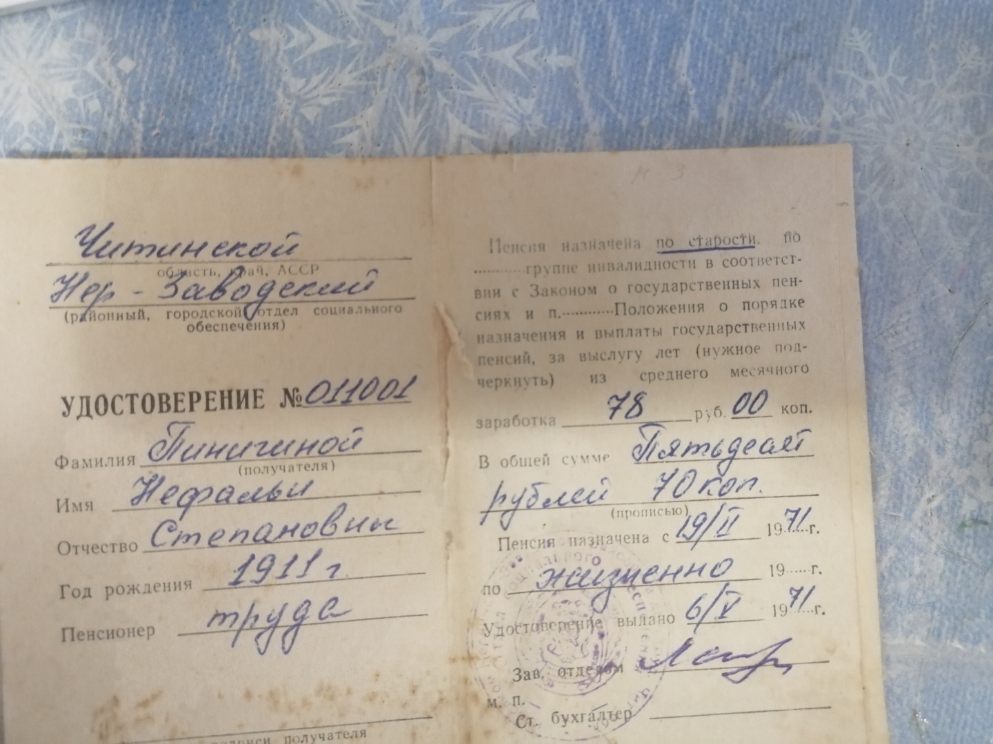 Потом ее «повысили». Она стала работать санитаркой. Но, хотя бы, в помещении, где было тепло. Так и прошла ее жизнь в глухом забайкальском селе.