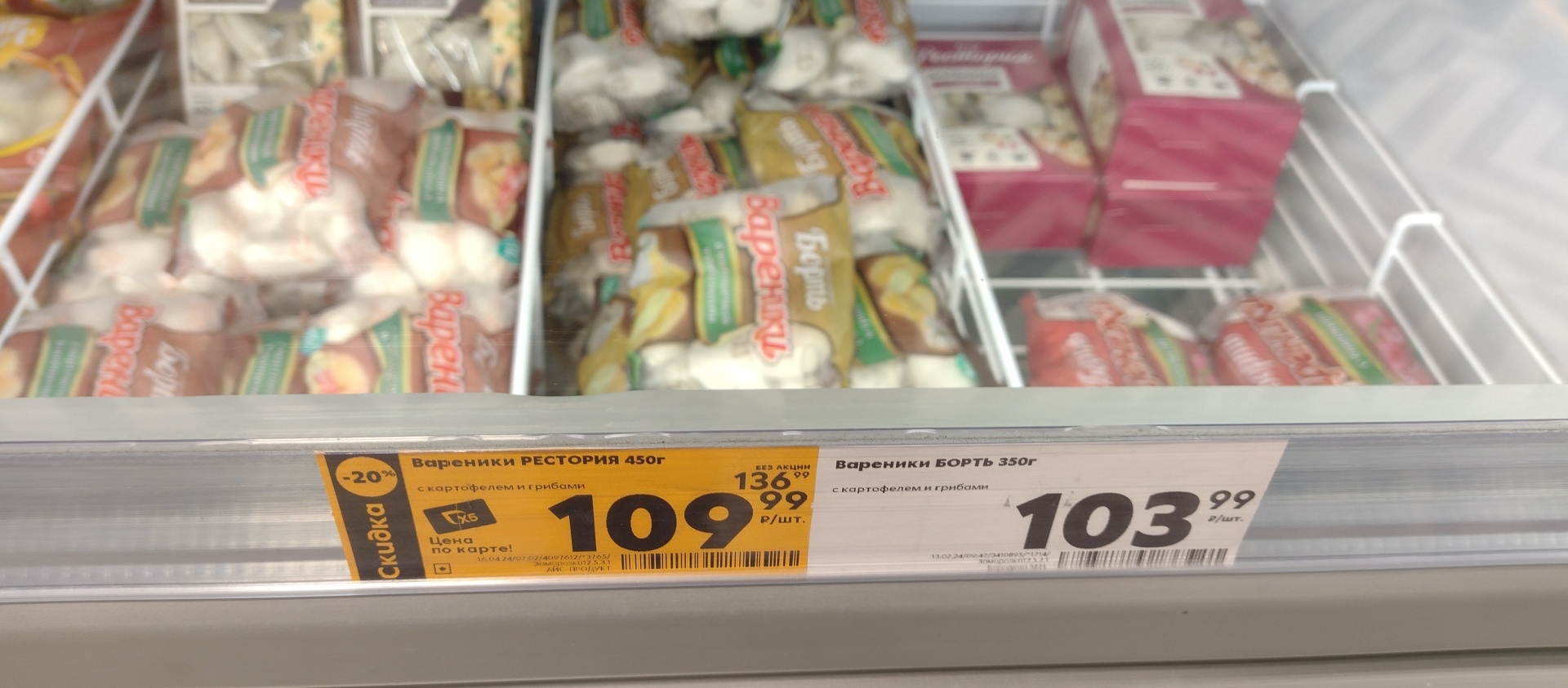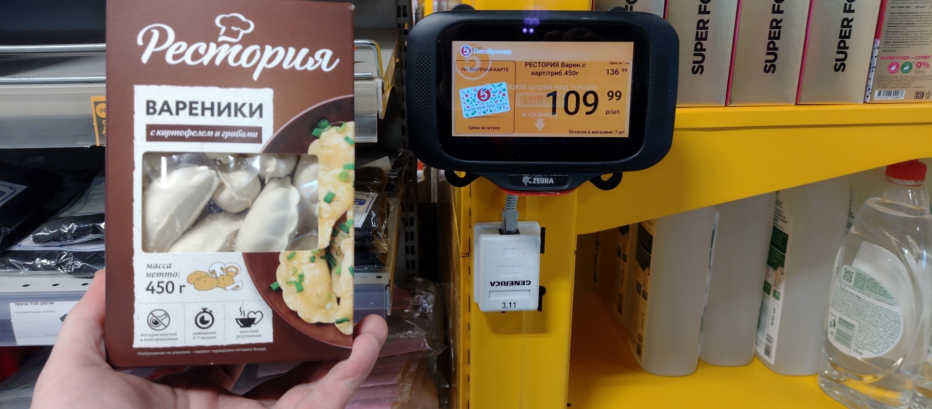 В этот раз мне повезло, и вареники стоили совсем недорого, всего 109 рублей и 99 копеек. Я зная о том как часто цена не совпадает решил проверить её на сканере - все было верно и я решил взять одну пачку.