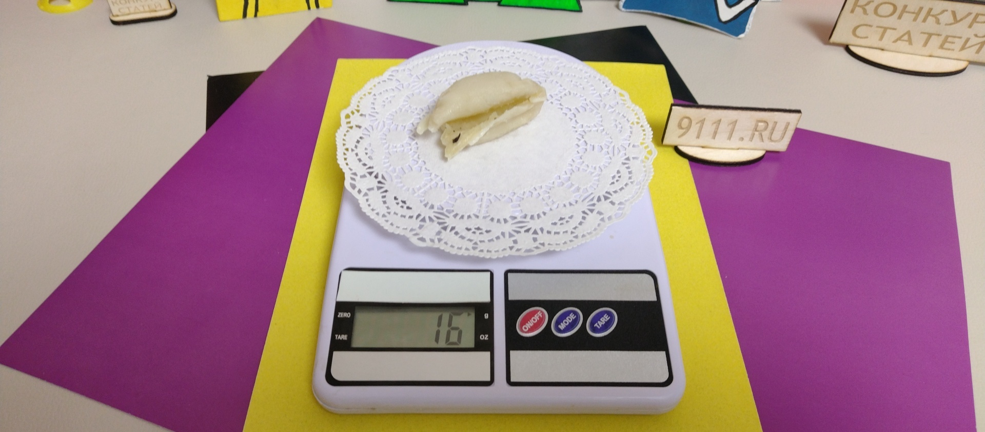 Интересно, сколько же весит примерно один вареник.Для этого мы его и взвешиваем. И оказалось, что один вареник весит примерно 22 грамма