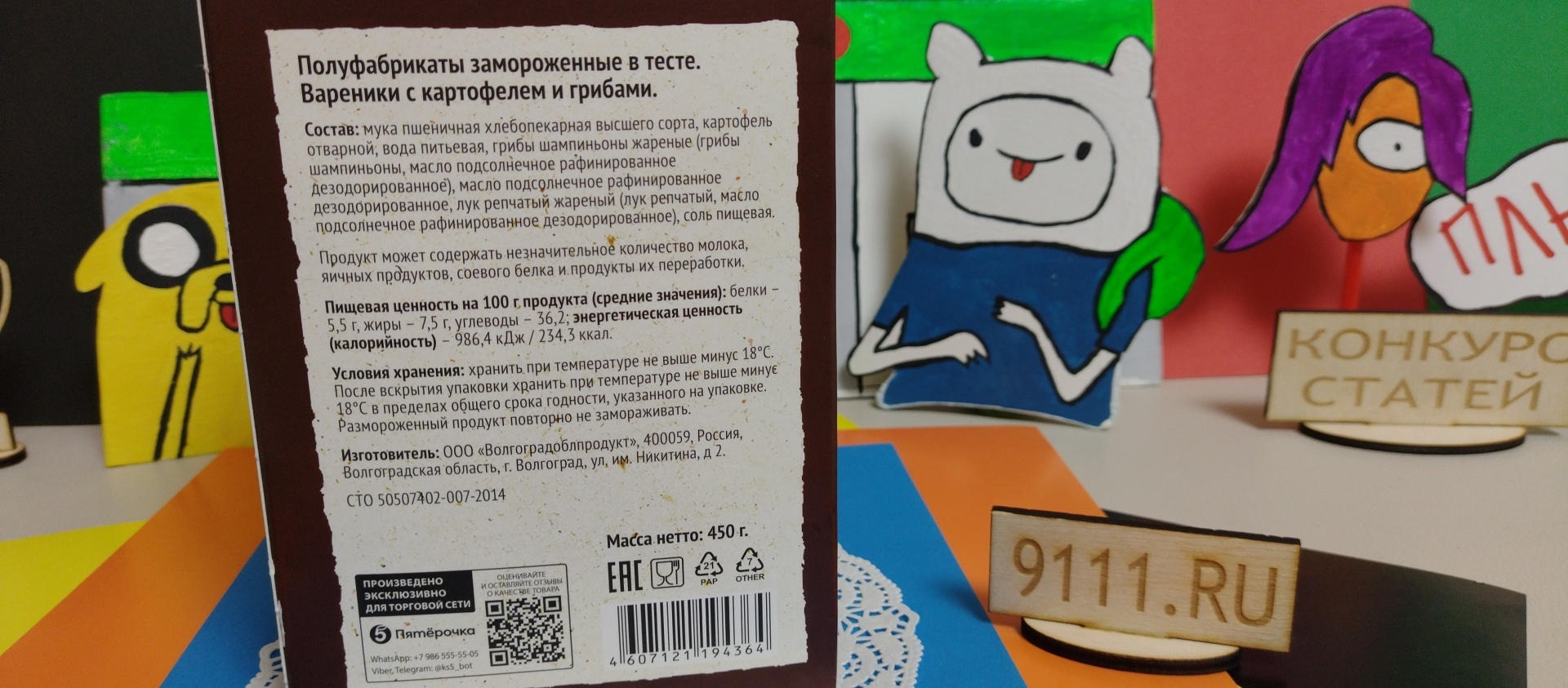 Посмотрим на состав: сделаны они из муки и воду а начинкой служит картофель и грибы шампиньоны.