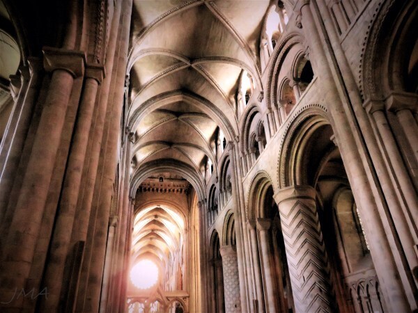 Интерьер Даремского собора в Англии. Большой ущерб ему был нанесен в то время, когда он служил тюрьмой для шотландских боевиков, содержавшихся там в суровых и унизительных условиях. Сегодня это место входит в список обязательных к посещению в Англии.
