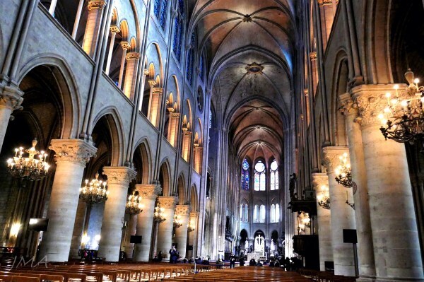 Интерьер знаменитого Парижского собора Парижской Богоматери (еще до апрельского пожара). Некоторый ущерб ей нанесли операции Второй мировой войны, но не такой большой, как ущерб, нанесенный во времена европейской реформации, а затем и Французской революции. На восстановление ущерба французским властям потребовались годы и много средств. Говоря об ущербе Второй мировой войны, стоит знать, что, за исключением некоторых исключений, таких как бомбардировка исторического города Дрездена в Германии, союзные антинацистские силы со временем научились и старались избегать бомбардировок мест, представляющих историческую ценность.
