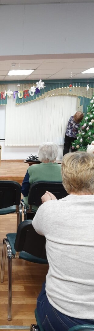 Нас встретили запах елки и звуки новогодних песен. В холле собрались пенсионеры, одетые в праздничные свитера и блестящие платья. Глаза некоторых светились воспоминаниями о былых временах, другие выглядели одинокими и потерянными.