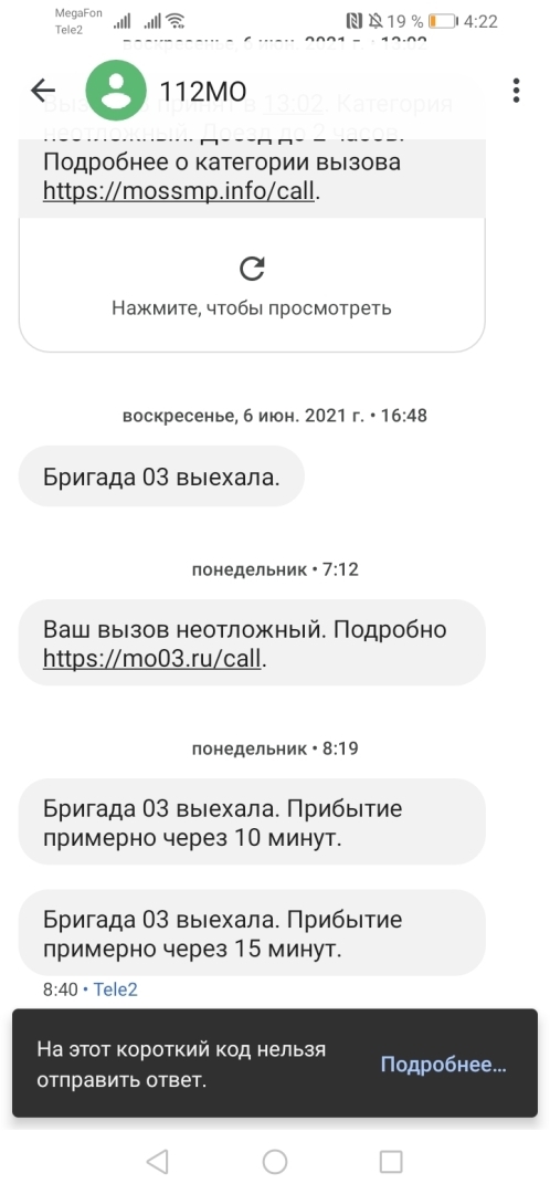 Елена показала мне сообщение в телефоне, и я поняла, сколько ей пришлось ожидать скорую помощь!
