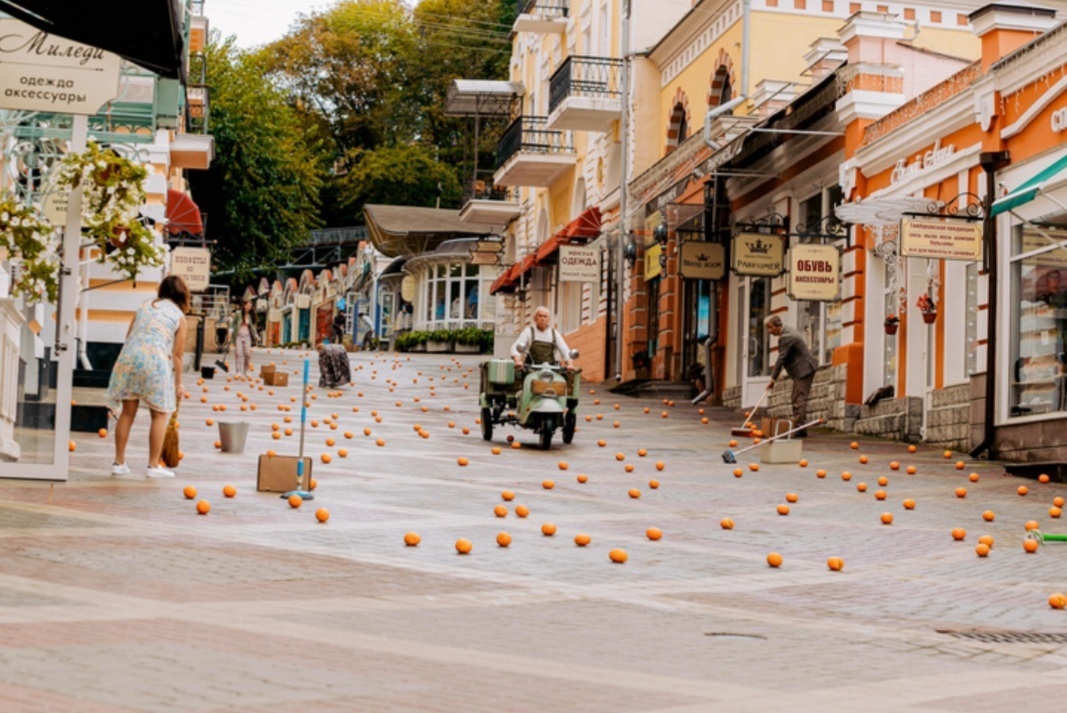Как рассказали в администрации Кисловодска, маршрут начинается как раз с улицы Карла Маркса, по которой после апельсинового урагана ехал на мопеде герой Сергея Гармаша. Также экскурсанты посетят Долину роз, через которую садовник Гена в фильме ходил на работу и обратно, и детскую площадку Лукоморье в Национальном парке, где он катал на качелях внука.