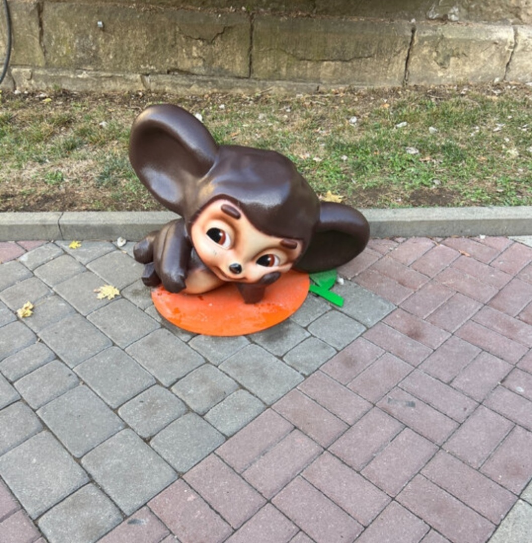 Собака гоняла Чебурашку по дворику, адрес пр. Кирова 13, Пятигорск. И в Кисловодске у здания Филармонии им. Сафонова.