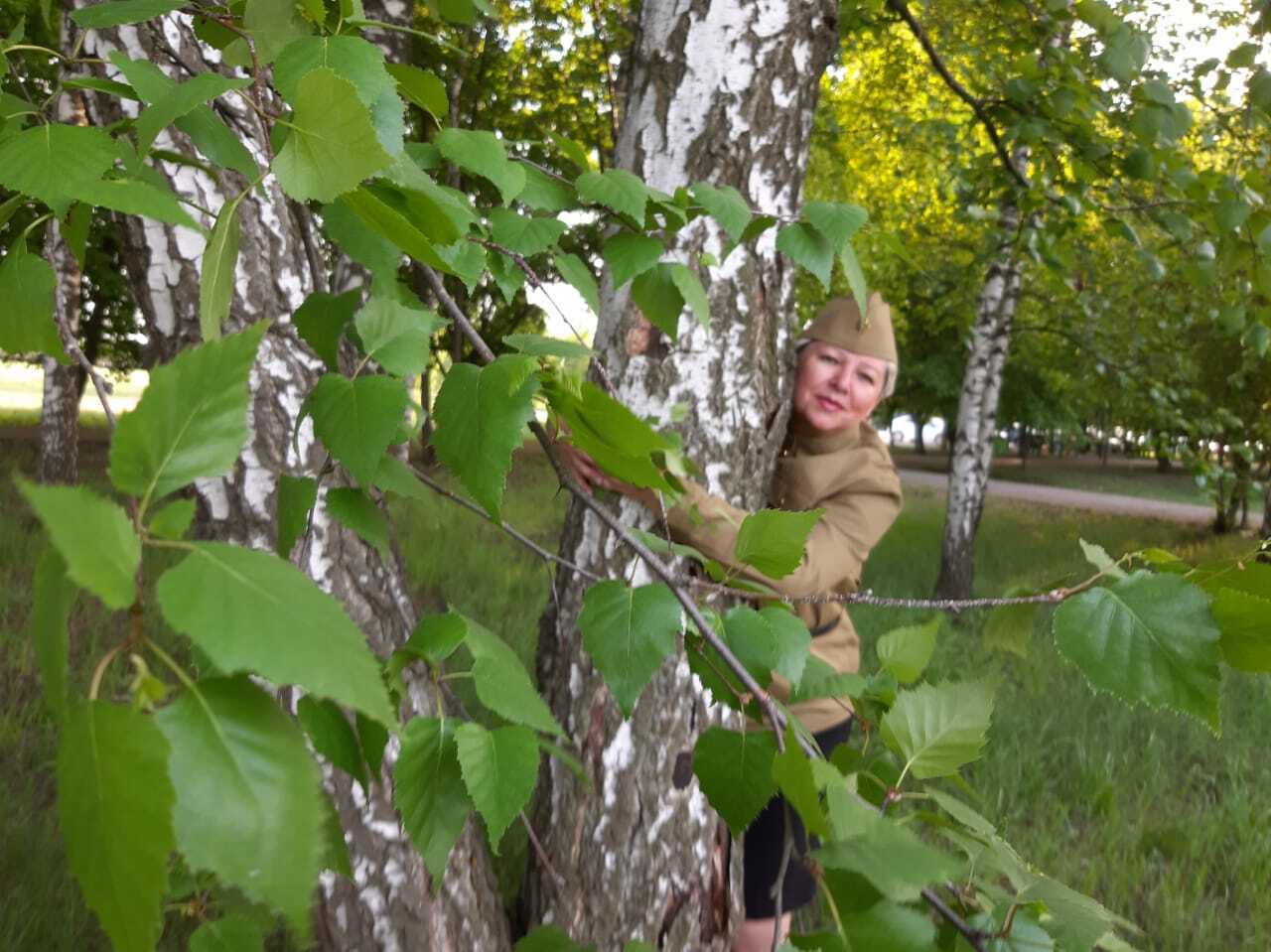 У нас была запланирована фотосессия в военной форме. Часа два я пробыла в военной форме. Ходила среди березок, сидела на траве. Мои мысли были в воспоминаниях дедушкиных записей о войне.