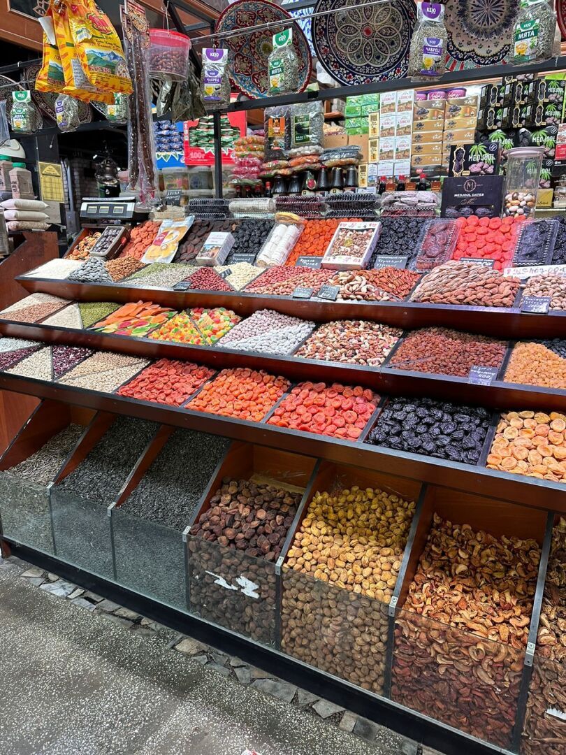На Манежной площади появилась масштабная экспозиция ёлочных украшений, выполненных в стилистике старинных ватных игрушек. Здесь же работает ярмарка с блюдами из разных регионов.