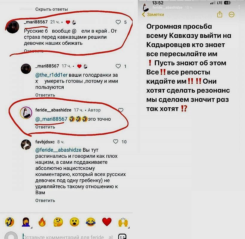 После возбуждение уголовных дел, Фериде с какого-то восторженного перепуга решила обратиться за помощью к «кадыровцам» в деле борьбы с «русскими голодранками».