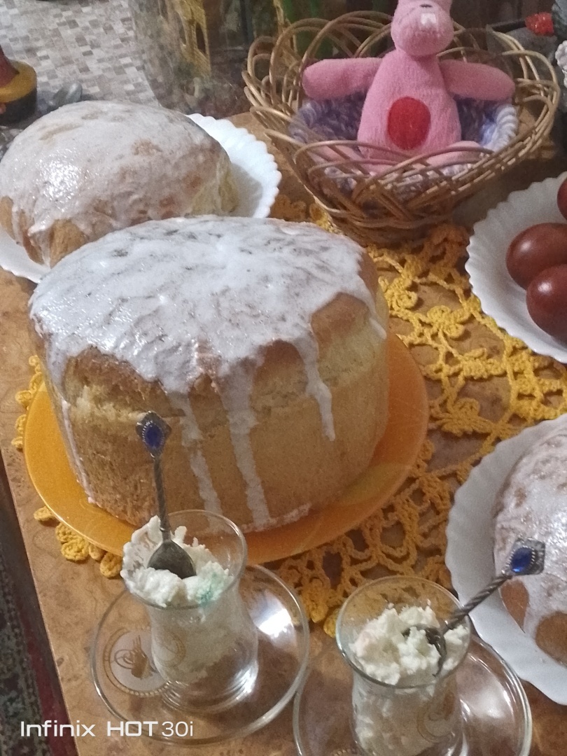 Сколько себя помню, у нас в семье на этот праздник всегда пекли куличи и красили яйца. Когда жива была моя бабушка(давно- давно), она кроме куличей и покраски яиц, готовила Пасху. Специально покупала домашний творог на рынке, потом с творога удалялась лишняя жидкость, бабуля заворачивала его в марлю и подвешивала на кухне на веревочку.Потом добавляла в эту массу всякую вкуснятину( изюм, орехи). И формочка была специальная для Пасхи - деревянная, с вырезанным крестом.