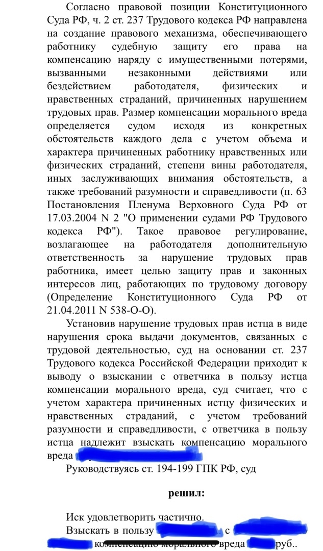 Понятно, что компенсация морального вреда маленькая. Но Наташе этот факт доставил небольшое удовольствие. Позже мы взыскали судебные расходы.