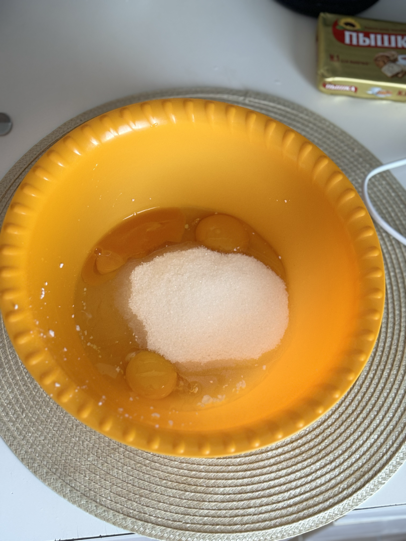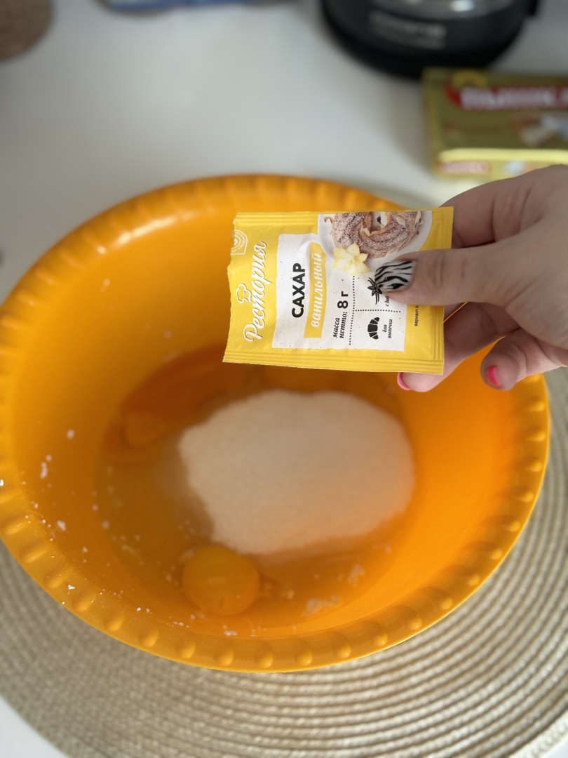 🪺Затем в отдельной миске к 3 яйцам добавляем ванилин и сахар