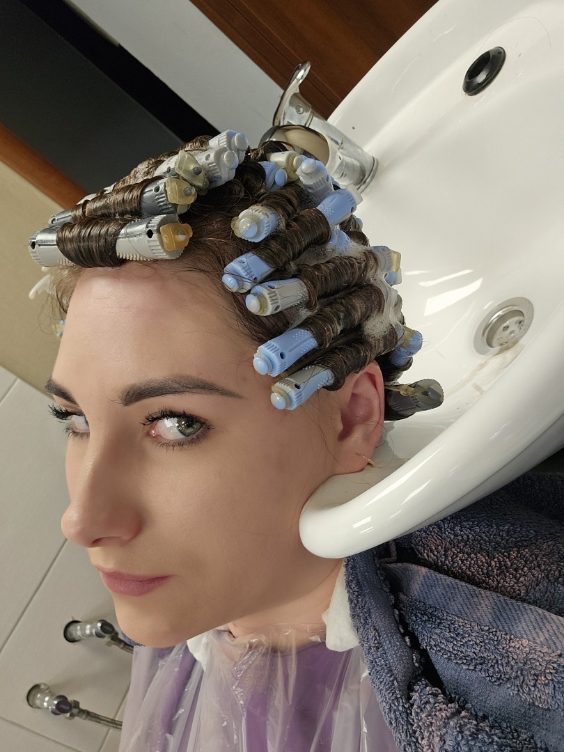 Села в кресло у мастера, объяснила чего хочу, показала фото примера, чего я ожидаю от процедуры, мастер меня уверила в том, что да на выходе мы получим такие локоны. Подобрали с мастером бигуди, какую волну я хочу, приступили к процедуре (на секундочку мастер даже не поинтересовался, что было с моими волосами в ближайшие полгода, не провела тест волос на эластичность).