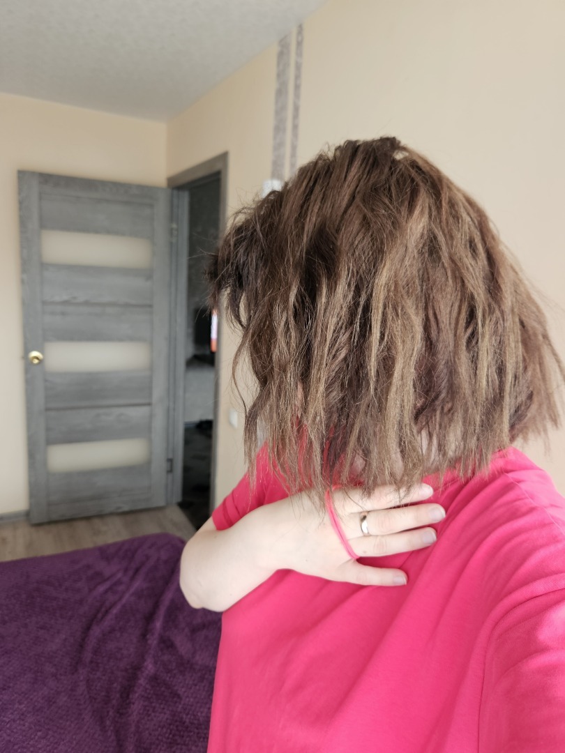 Спустя 2 дня я стала замечать, что волосы просто отваливаются, появился кожный зуд, шелушение кожи головы. После сна на подушке большое количество волос, а при мытье головы выпадают кусками волосы. Я дико испугалась, позвонила знакомой парикмахеру из другого города, обговорили ситуацию, она сказала: приезжай, я посмотрю и решим, как можно выйти из этой ситуации.