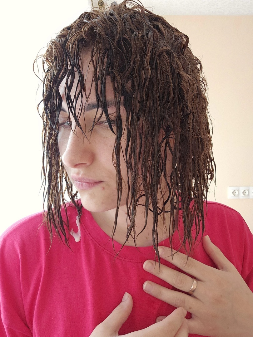 Появились сильная пористость, пышность, волосы просто тянулись как резинка. Я пошла помыла голову, думаю, вдруг будет получше, хотя мастер мне сказала голову мыть нельзя будет 2 суток. Помыла я голову, нанесла маску для восстановления волос, подержала маску под термошапкой минут 20, пошла смывать волосы. Волосы были на ощупь не очень приятными, никаких кудрей на волосах не было, волосы даже не создавали эффекта биозавивки.