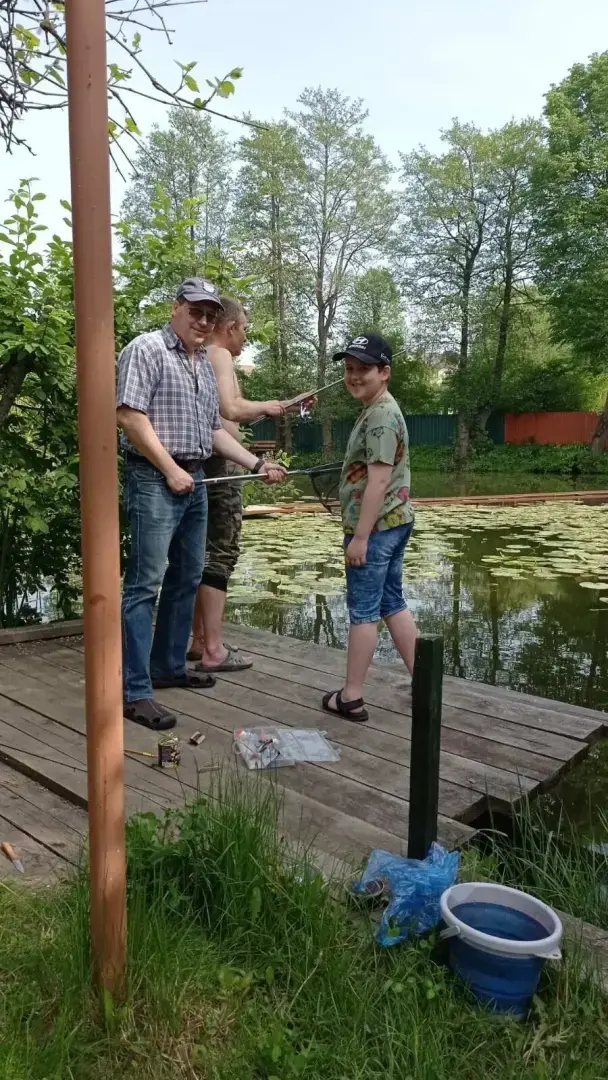Мы благополучно пожарили всё мясо, а дальше началась рыбалка! Сын с мужем сестры карасей таскали только так. Я успевала их отпускать. Мы не убийцы. Даже вытащили одного здорового карпа! Восторга было выше крыши!