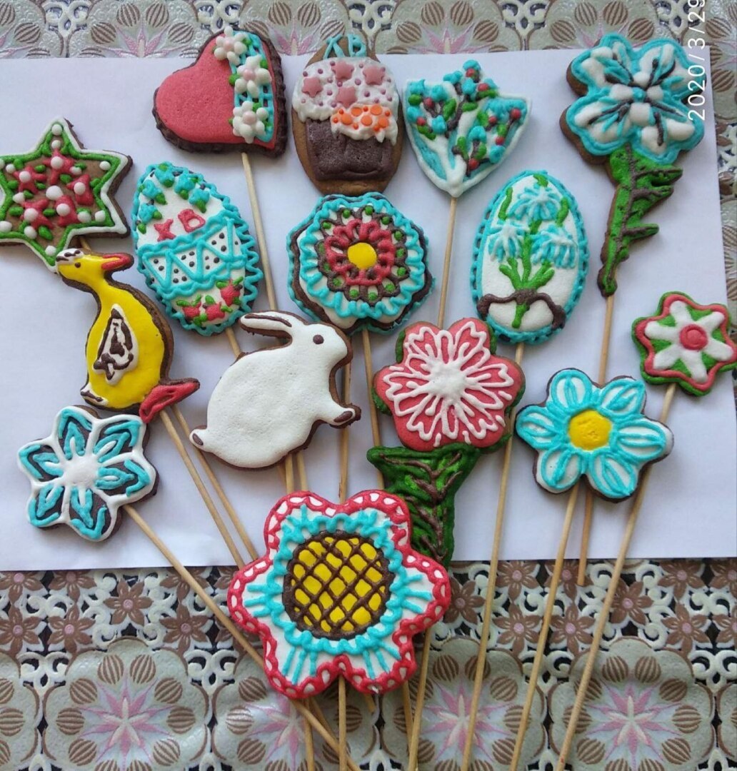 Приснился сон, что я рисую на пряниках. Решила попробовать и у меня получились не просто пряники, а пряничные букеты. Показываю свои работы.