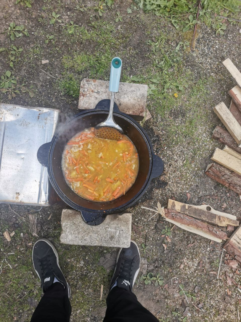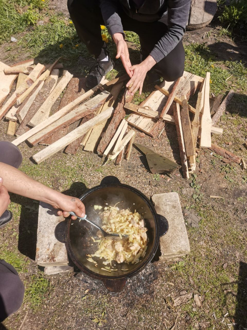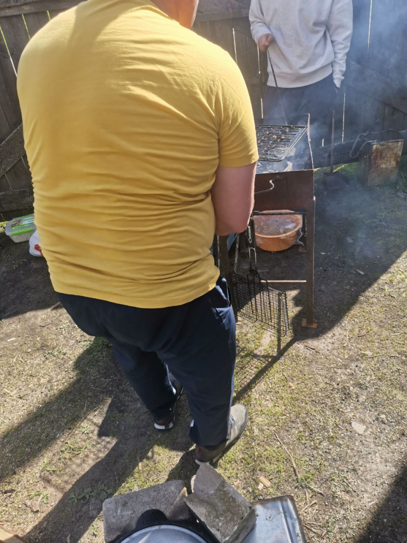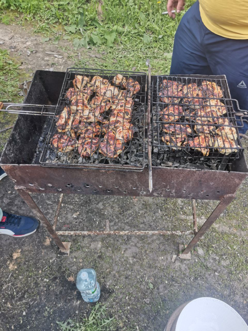 Пока мясо жарилось на огне, мы с общались, смеялись и делились последними новостями.