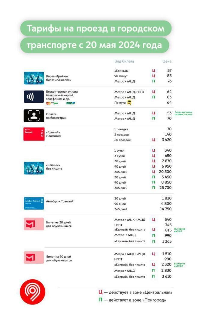 Уважаемые пассажиры! Сообщаем вам, что с 20 мая текущего года в Москве изменятся тарифы на проезд в городском транспорте.