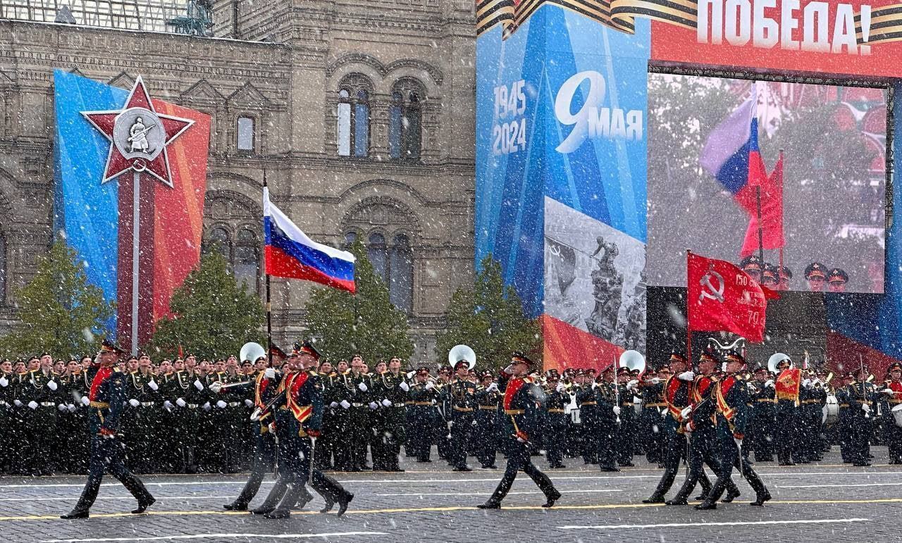 Сегодня в Москве началось величественное шествие Парада Победы, которое сопровождается пушистым снегом.