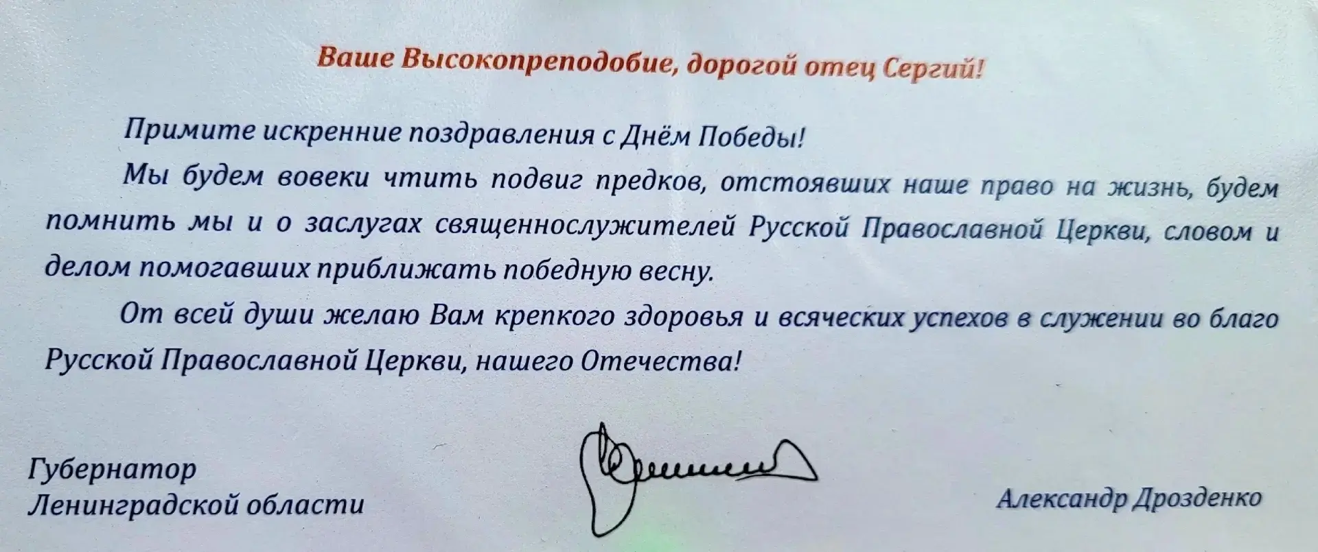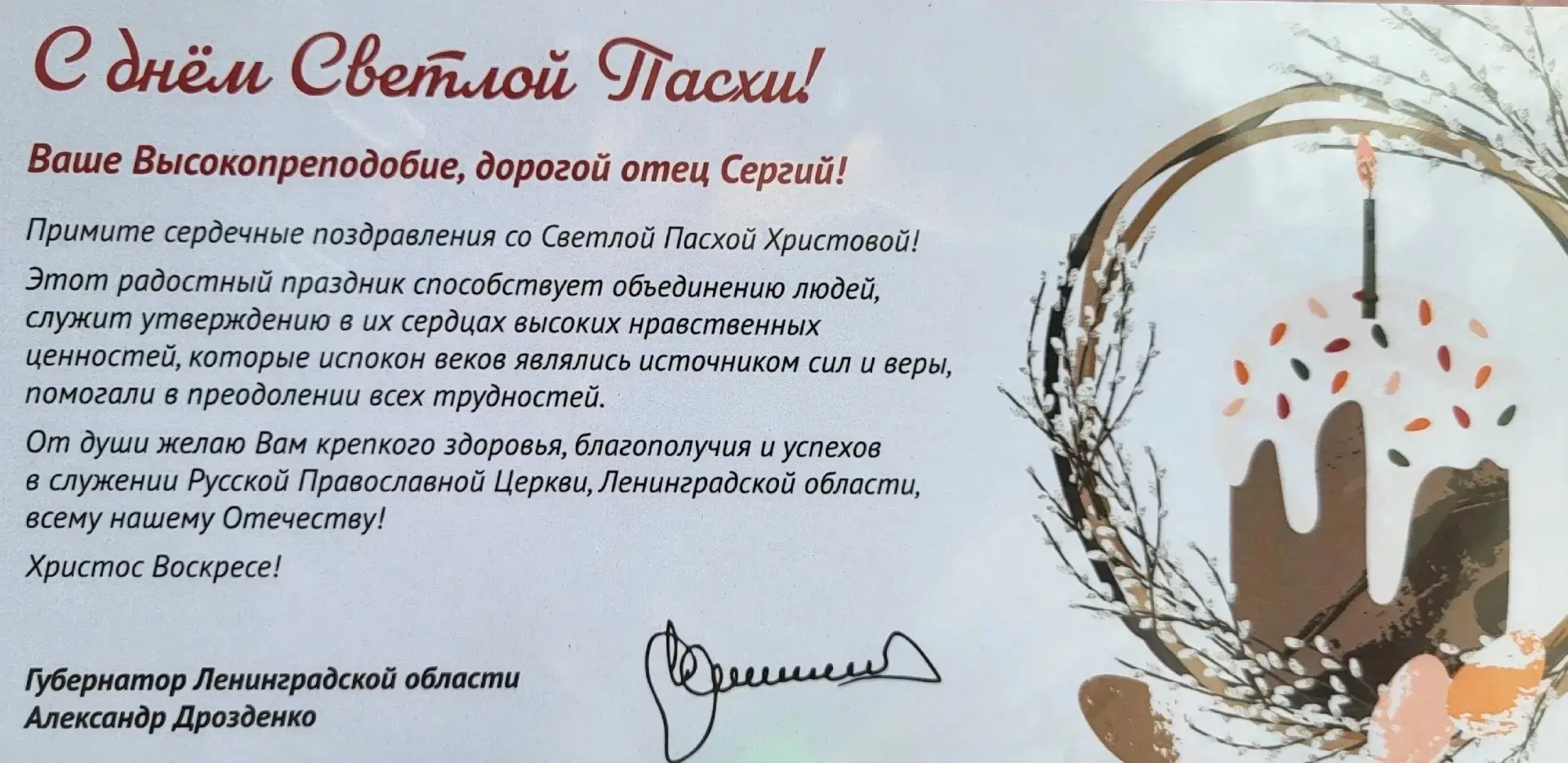Губернатор Ленинградской области Александр Юрьевич Дрозденко поздравил с праздником Светлой Пасхи Христовой и Днем Победы настоятеля храма Коневской иконы Божией Матери в посёлке Саперное Приозерского благочиния протоиерея Сергия Белькова и пожелал крепкого здоровья, благополучия и успехов в служении Русской Православной Церкви, Ленинградской области, всему нашему Отечеству!)))🙏🙏🙏