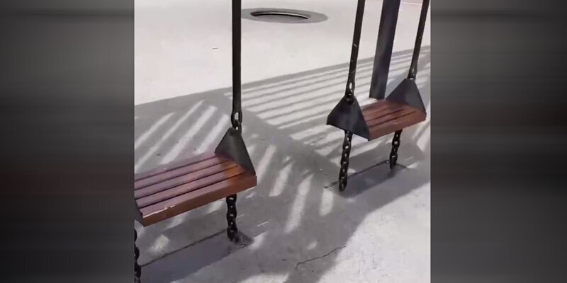Все претензии не чиновникам а к архитектору или дизайнеру...Может быть это новое напрвление и цепь сделана что бы раскачиваясь кто то не упал с высоты .Вдруг это сделано исходя из техники безопасности...как знать... 😊
