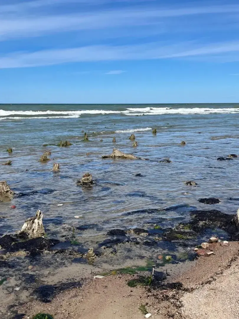 На самом деле, «Реликтовый лес» - это громко сказано! По факту - обыкновенные пни, остатки леса, который существовал тут более 300 лет назад. А возник он на месте судоходного пролива, как пишут в некоторых источниках - всего-то 1000 лет назад. Со временем, пролив занесло песком, появился заболоченный лес, но море беспощадно. Этот кусочек оазиса просто затопило.