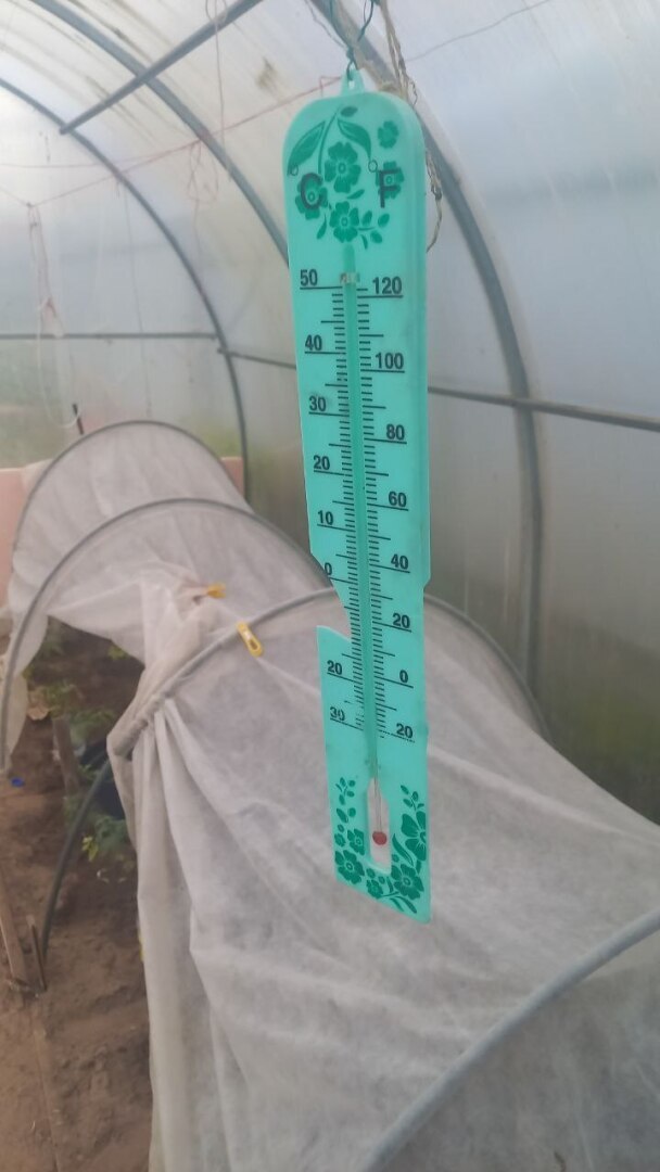 И нагнать как можно больше такого дыма, самим стараться все же не дышать им, выйти, закрыть дверь теплицы. Но следить, конечно, чтобы не было полыхающего огня, а образовалась дымовая завеса. С помощью нее, таким образом, на термометре поднялась температура до 10 градусов и растения согрелись.