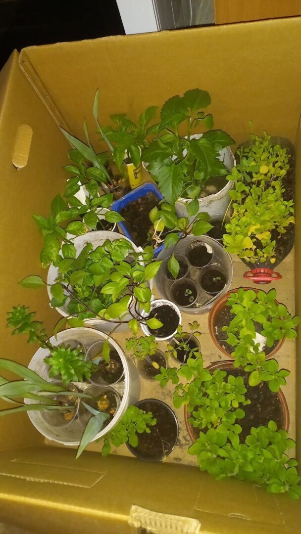 А вот цветы в саду возле дома пришлось срочно эвакуировать. Мы собрали их в коробку и занесли в дом.
