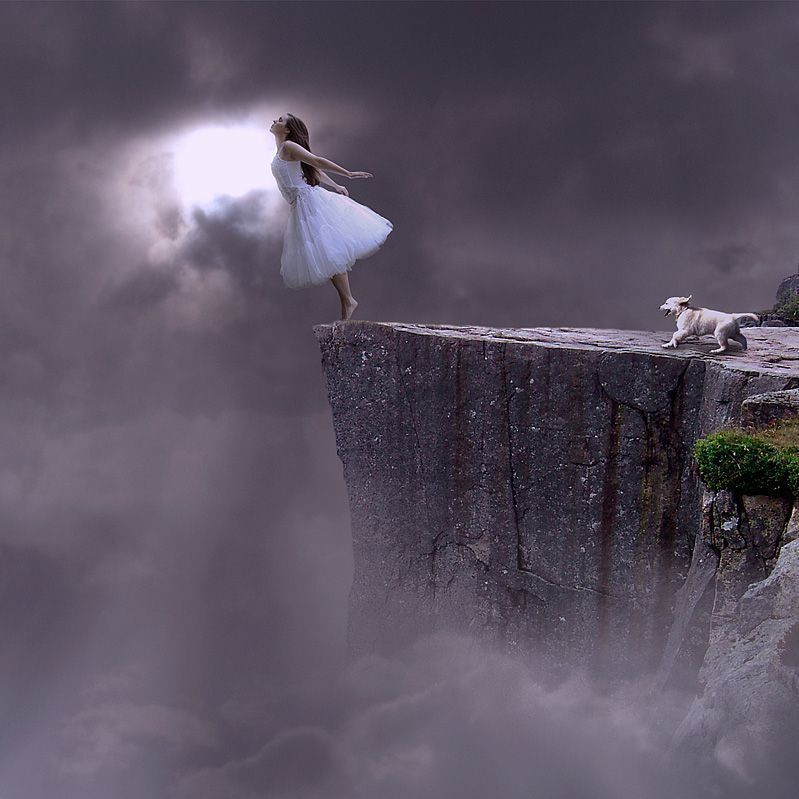 А она наклонилась столбиком, руки в стороны расставила и просто миг отделял её от полёта ласточкой с четвёртого этажа. Или пятого. точно не помню, но не ниже.